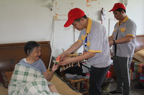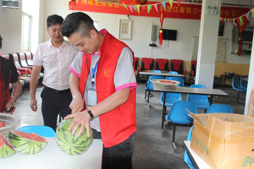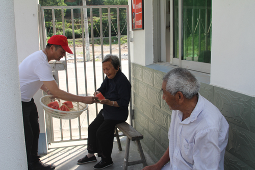 慰問中,黨支部成員們將好心人捐贈給黃巖慈善義工隊的西瓜切好,熱情地送到老人們的手中,并詳細詢問了老人們的生活、身體狀況等,叮囑老人保重身體,送上端午祝福。老人們臉上洋溢著幸福的笑容,對大家的善舉深表感謝。