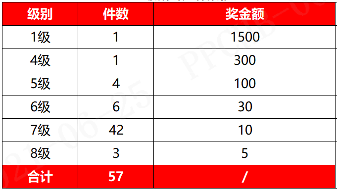 根據(jù)主管部門統(tǒng)計(jì),現(xiàn)已收集到創(chuàng)新改善提案126件,其中57件在6月15日已通過(guò)評(píng)審,為了表示對(duì)員工參與改善工作的支持和鼓勵(lì),公司對(duì)經(jīng)過(guò)評(píng)定的提案員工給予如下獎(jiǎng)勵(lì):
